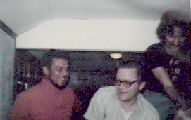 9Y4VU, Frank chatting with K0VA (formerly KE6V and K3VA), Herb, and K3WJV, Billy. Frank was attending classes in Philadelphia, and operated a contest with us. He was amazed at how SLOW the rates were...