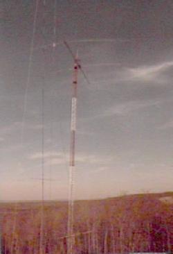 This is a full size 3 element 40 meter beam on a 150 foot high tower. That 48 foot boom is now the bottom 48 feet of the 80 meter 1/4 wave vertical seen on page 1.